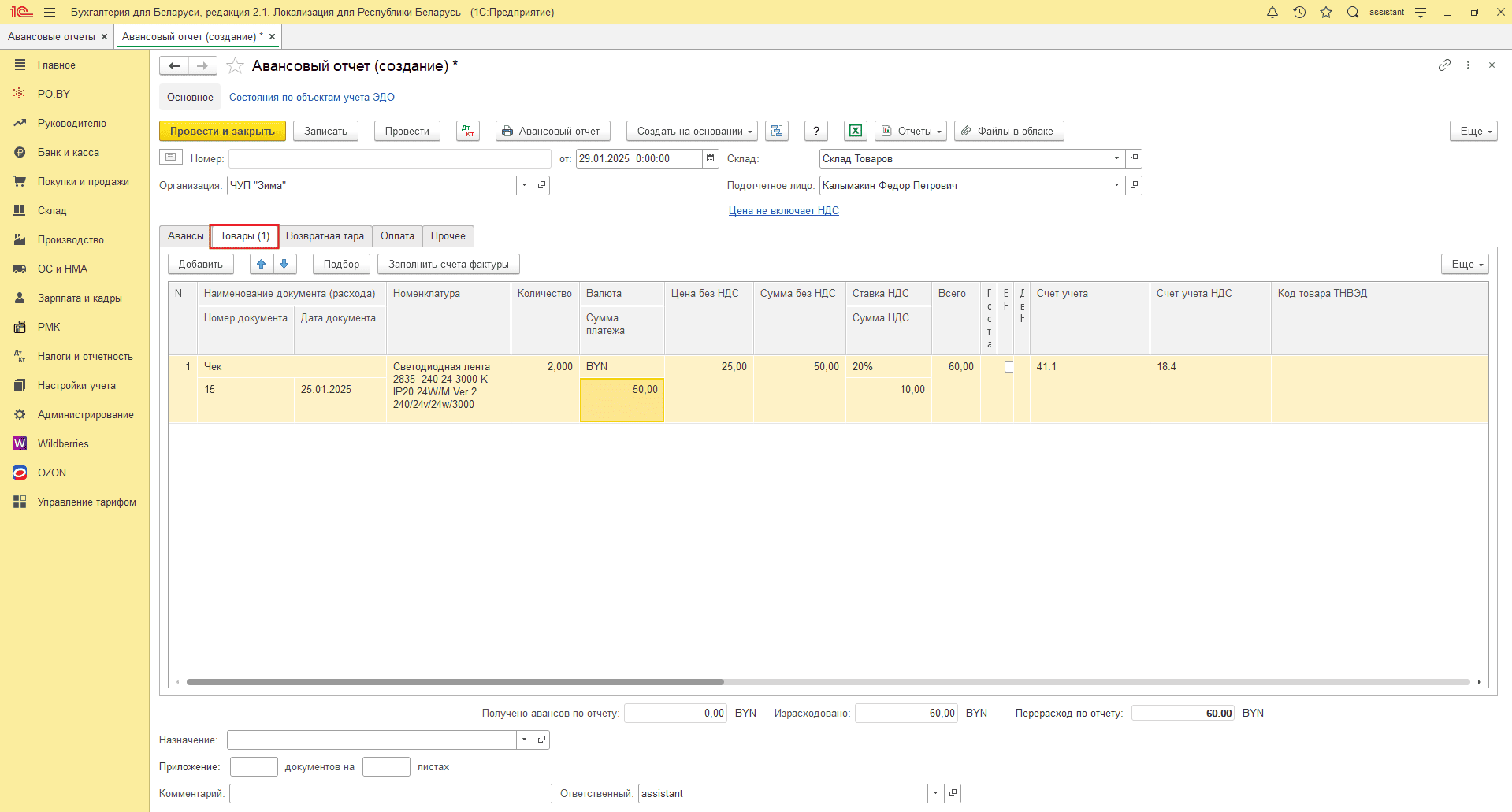 Аванс в белорусских рублях – авансовый отчет в белорусских рублях